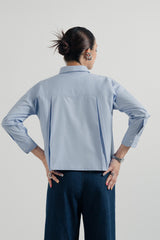 Make a statement with this cropped cotton shirt, finished with tailored sleeves, buttoned cuffs, and a back box pleat. Refined and breathable, its light blue tone adds a fresh touch to both layering and standalone wear.