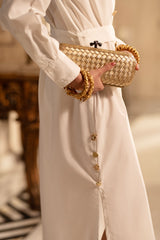 Classic White Shirt Crafted from Soft Poplin Fabric, Featuring Elegant Golden Buttons for a Sophisticated Touch. Designed with a Tailored Fit and Subtle Stitching to Elevate Everyday Style.