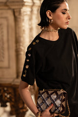 Classic Black Women’s T-Shirt Made from Soft and Breathable 100% Cotton Jersey Fabric, Perfect for Everyday Comfort.