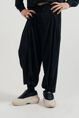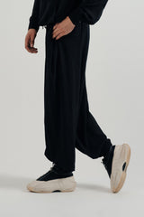 Make a statement with these black dhoti-style pants, a contemporary nod to South Asian tradition. The loose fit allows for fluid movement, while the elastic waistband ensures comfort, creating a piece that bridges cultural heritage with modern versatility.