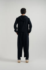 Loose Fit Dhoti-Style Pants in Black, Crafted from a Cotton-Elastane blend. Designed with an Elastic Waistband and Adjustable Drawstring, these pants combine Ease of Wear with Modern Refinement.