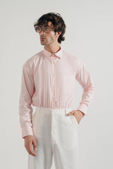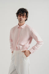 Regular Fit Crop Shirt in Light Pink, Made from 100% Cotton. Featuring Full Sleeves, a Pointed Collar, Button Front Fastening, Buttoned Cuffs, and a Wide Elasticated Hem, it offers a Clean, Modern Silhouette.